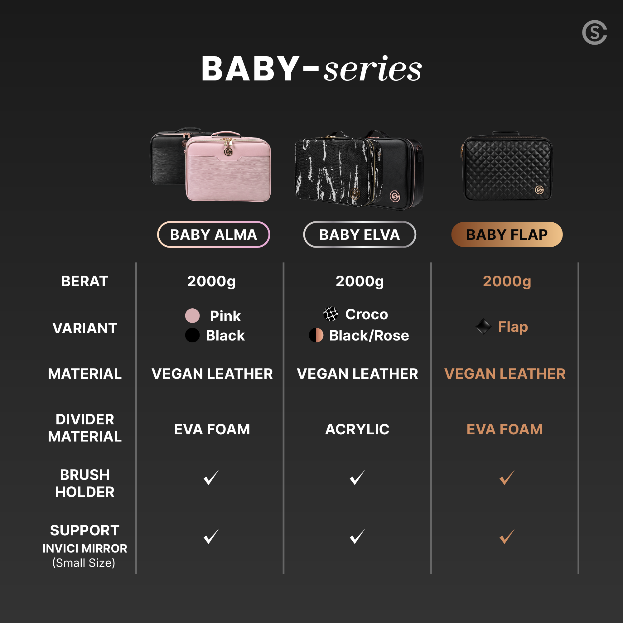 Karena Baby Flap merupakan tas makeup ringan berkapasitas besar dengan sistem dua layer untuk MUA yang membutuhkan penataan rapi dan setup siap pakai tanpa tas besar.