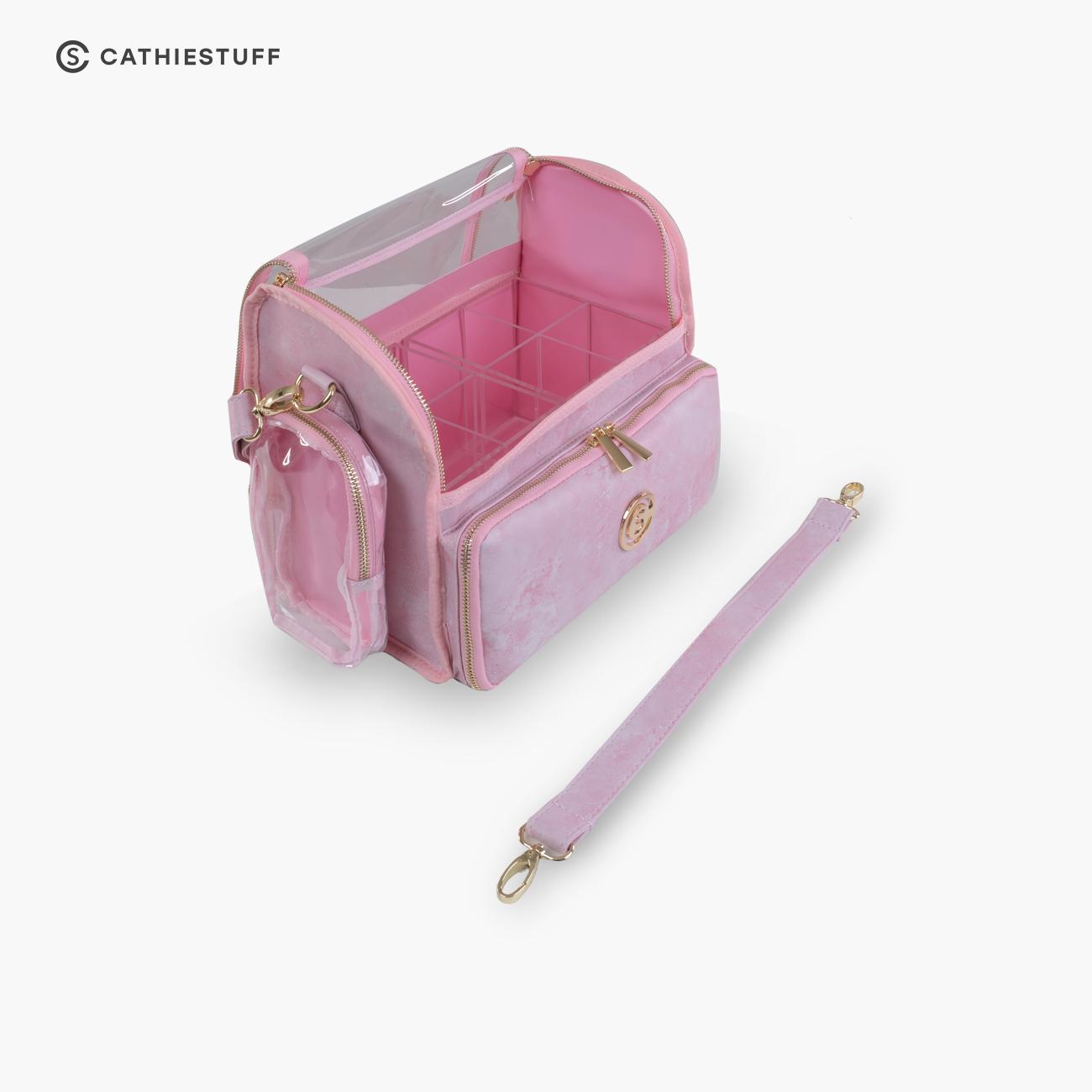 Slay Elva Bag dirancang khusus untuk memberikan kemudahan kepada para makeup artist, hair stylist, dan nail artist dalam membawa perlengkapan yang lebih terorganisir. Tas makeup ini menggunakan bahan kulit sintetis premium, memberikan tampilan yang mewah. Mudah dibawa dengan 2 pilihan strap, dapat dijinjing menggunakan strap pendek atau dipakai bersilang dengan strap panjang yang dapat diatur sesuai kebutuhan. Kompartemen utama dilengkapi dengan akrilik yang dapat diatur posisinya, dan penutup transparan PVC premium memudahkan untuk melihat isi makeup di dalamnya.