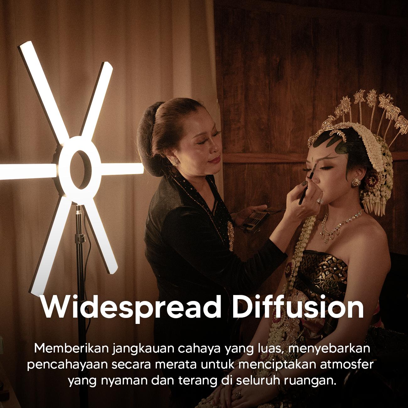X-Link adalah lampu makeup profesional dengan desain bintang berdiameter 79 cm dan CRI 98. Didesain khusus untuk menghasilkan cahaya merata, natural, dan akurat, X-Link jadi pilihan utama MUA profesional dan beauty creator yang membutuhkan pencahayaan setara studio.